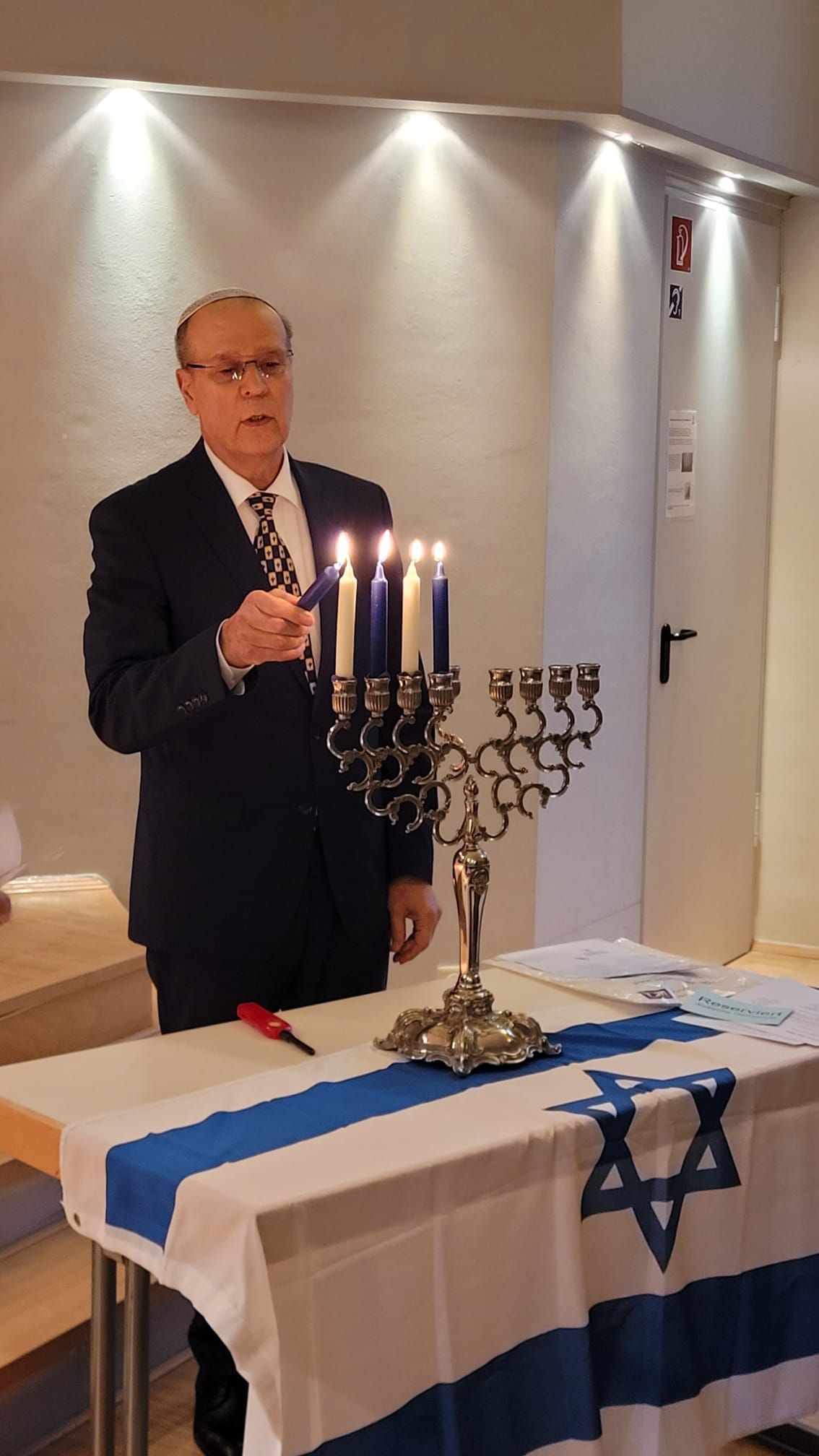 Zu Beginn wurden von unserem Vorbeter, Yachin Nahmany die Chanukkalieder angezündet.