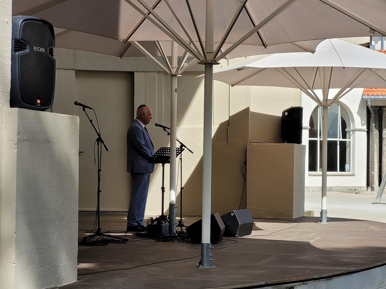 Manfred de Vries, Vorsitzender unserer Gemeinde, begrüßte die zahlreichen Gäste und die Klezmer Tunes.
